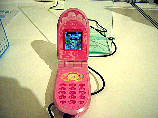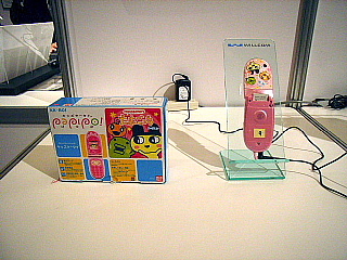 まもなく発売が開始されることになっているキッズケータイ papipoの実機が展示されていました。 W-SIMを利用したジャケットフォンとしてバンダイが開発した ものです。 発売前から注目度が高いことでも知られていますね。 |